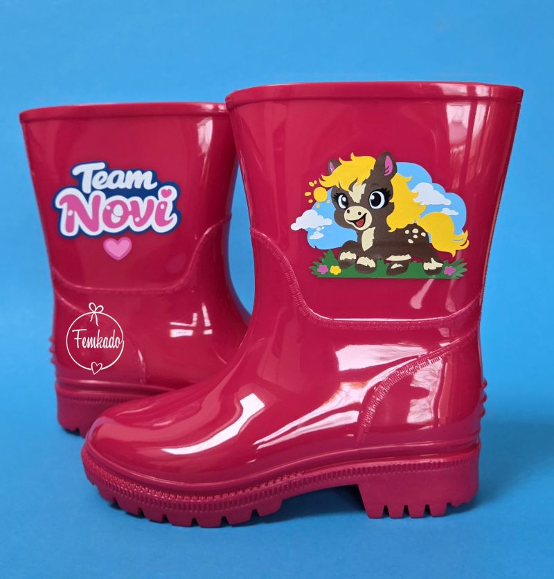 De klant hoopte dat ik de hele afbeelding kon toepassen voor de bewerking, maar gaf al aan dat alleen het deel van ’team Novi’ ook goed was. Dat was voor hem het belangrijkste deel dat hij graag op de laarsjes wilde. Daar neem ik natuurlijk geen genoegen mee. 😉 Maar wat een uitdaging was het om deze laarsjes te maken! Niet omdat ik twijfelde aan mijn kunnen, maar wel vanwege de vele kleurlagen die verwerkt waren in de afbeelding die ik mocht gebruiken. Deze afbeelding moest ik dan ook eerst bewerken. Daar gebruik ik een specifiek tekenprogramma voor op mijn Ipad waarmee ik de afbeelding kan ‘ontleden’. Dat houdt in dat ik alle kleurlagen en vormen van elkaar moet gaan scheiden en elk onderdeel zijn eigen ‘kleurtje’ krijgt. (Zo zaten er in deze bewerking 13 kleuren/lagen verwerkt.) Vervolgens ga ik met een snijapparaat al die verschillende laagjes uitsnijden. Om daarna weer alle laagjes samen te voegen tot de originele afbeelding. En zie hier het resultaat!